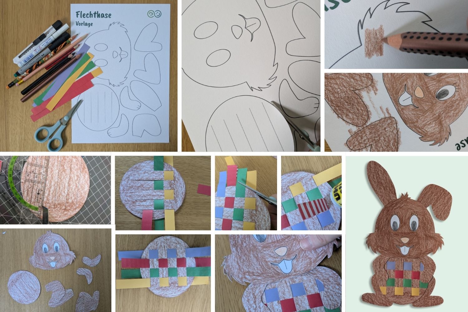 Ganz nebenbei üben Kinder beim Flechten ihre Feinmotorik, Konzentration und Geduld – und freuen sich am Ende über ihren selbst gestalteten Osterhasen.